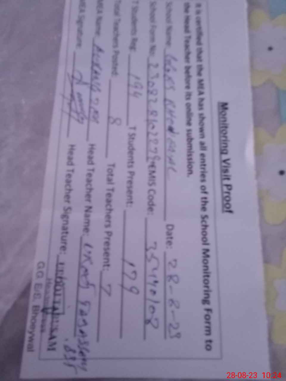 | Certified that this School was Inspected by the Undersigned MEA/DMO Today and the Information Stated Above is as Per Record. | |||||