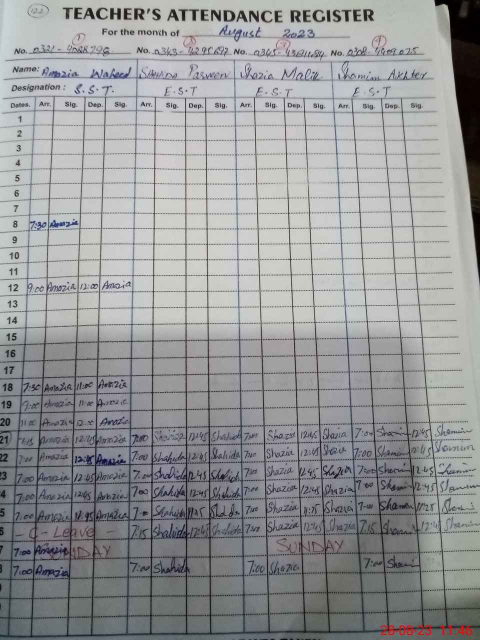 | Name: Am**** Wa**** Designation: (School Headmaster's/Headmistress's) SST Phone/Cell Number: 03**** |