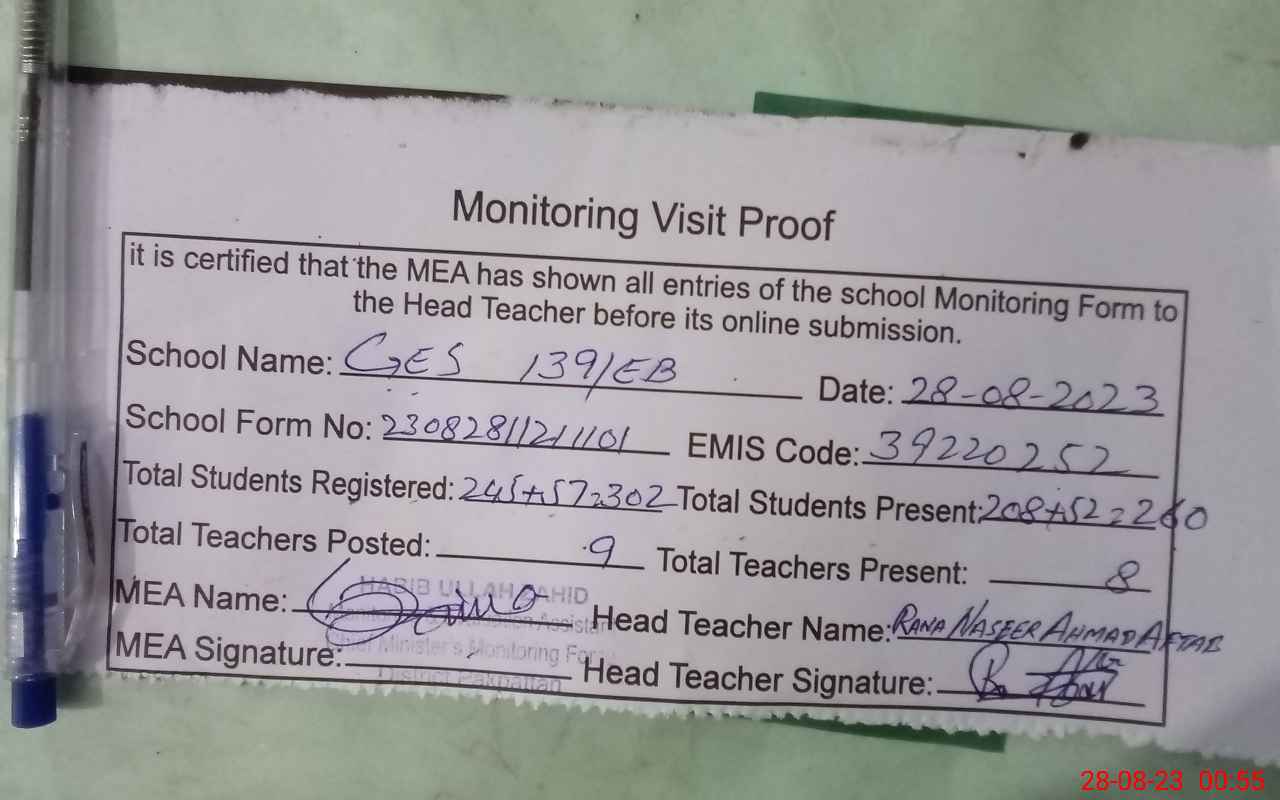 | EMIS Code: 39220252 | Name of School: GES CHAK NO 139 EB | |||