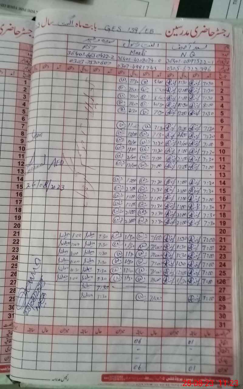| Name: RA**** NA**** AH**** AF**** Designation: (School Headmaster's/Headmistress's) SST (SCIENCE) Phone/Cell Number: 03**** |