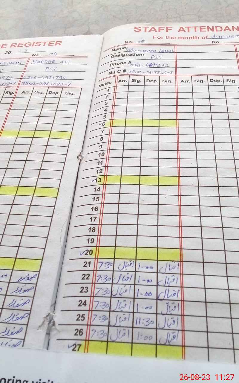 | Name: AS**** IQ**** Designation: (School Headmaster's/Headmistress's) PST Phone/Cell Number: 03**** |