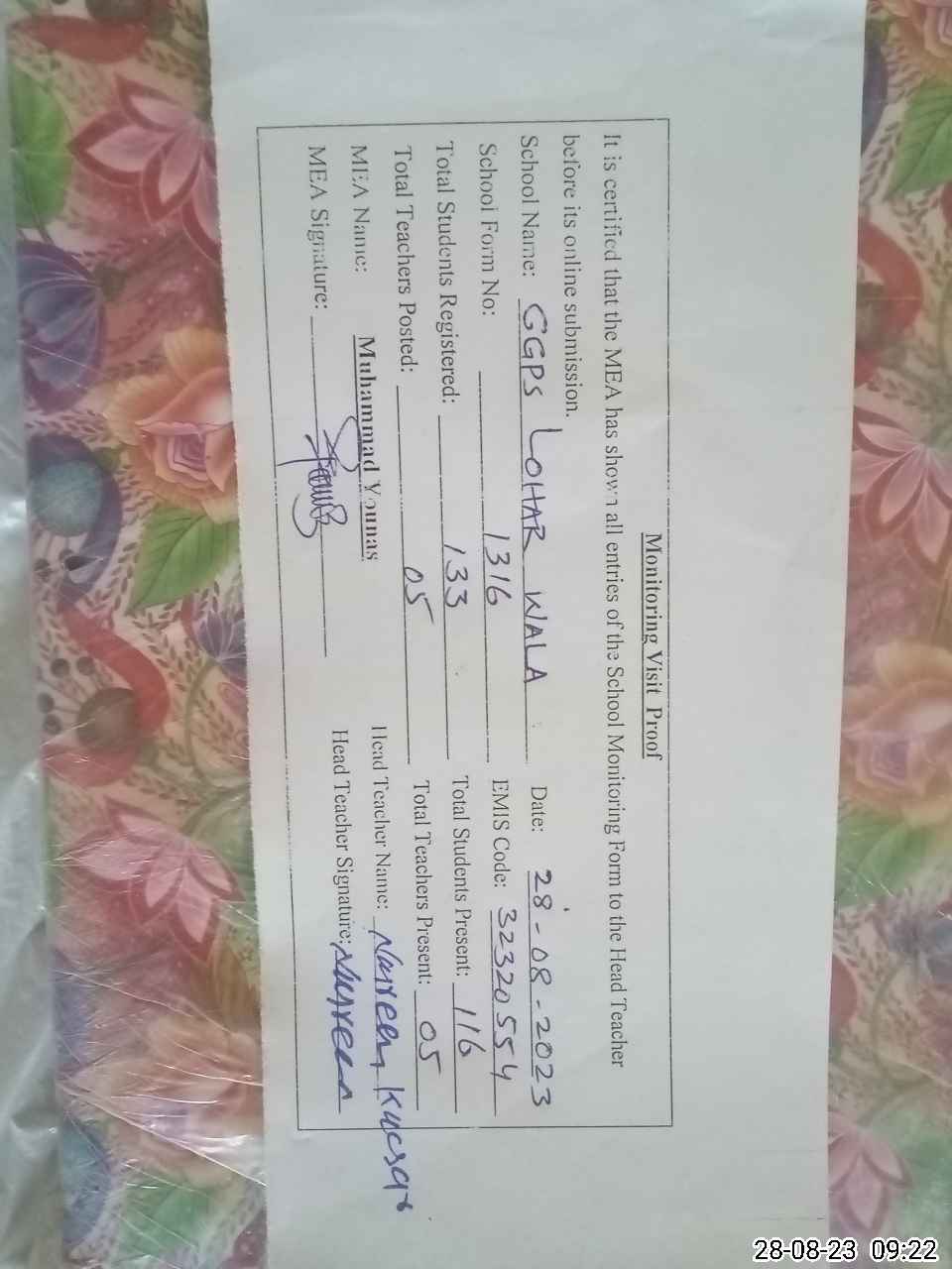 | EMIS Code: 32320554 | Name of School: GGPS LOHAR WALA | |||