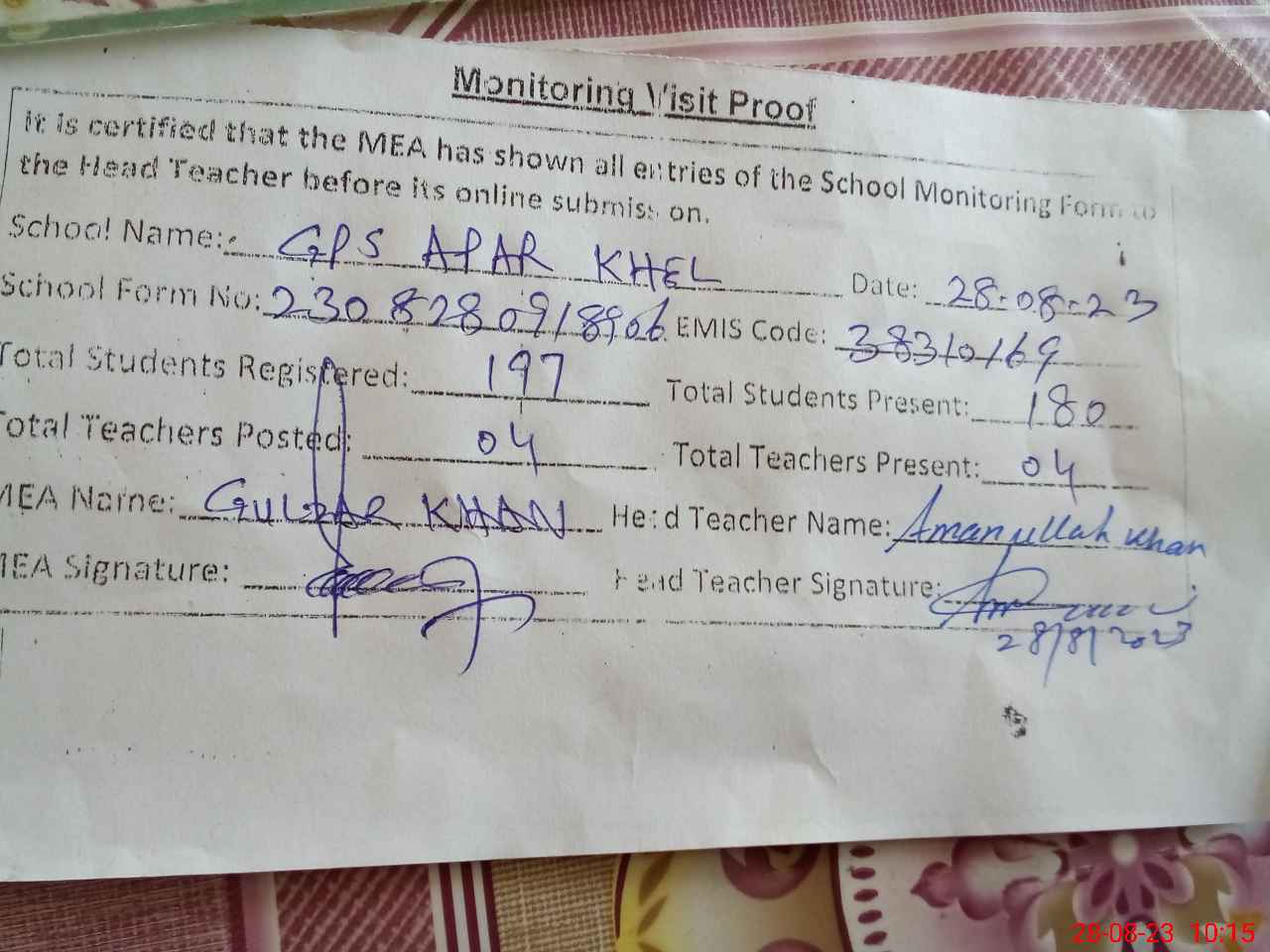 | EMIS Code: 38310169 | Name of School: GPS APAR KHEL WALA | |||