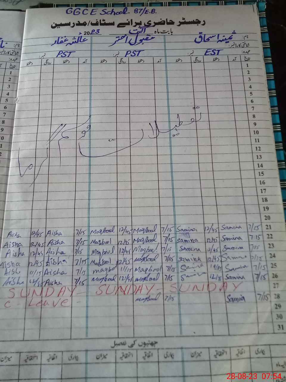 | Name: Ma**** If**** Designation: (School Headmaster's/Headmistress's) SST (GENERAL) Phone/Cell Number: 03**** |