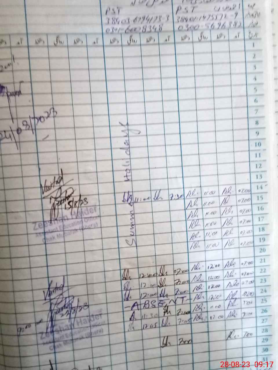 | Name: ZU**** AL**** Designation: (School Headmaster's/Headmistress's) PST Phone/Cell Number: 03**** |