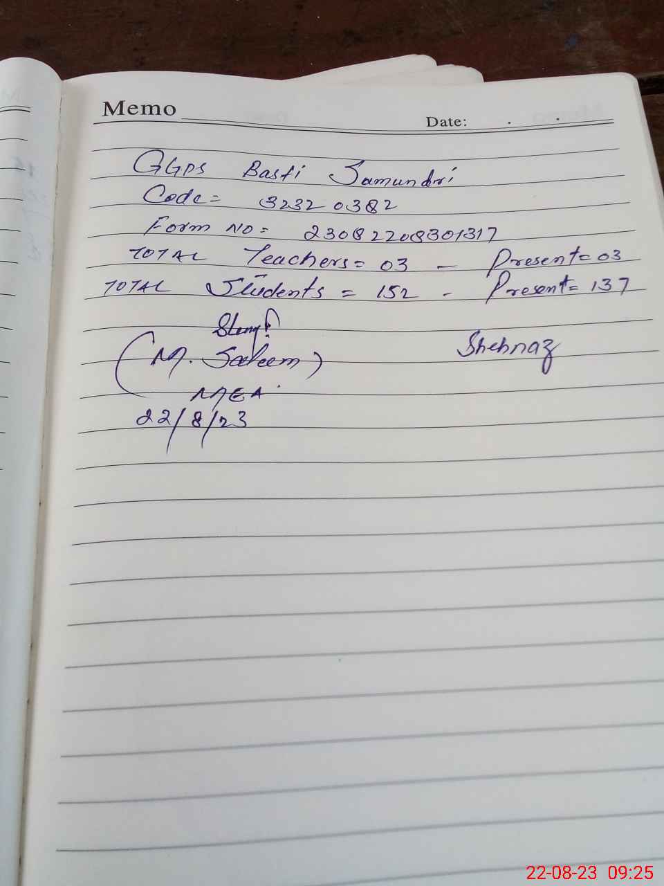 | Attendance Register | Head Teacher | MEA with School | Visit Proof |
