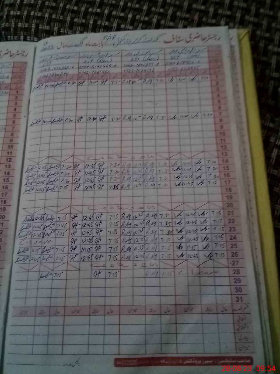 | CNIC | Full Name | Designation | R/C | Absence During Last Calender Month |