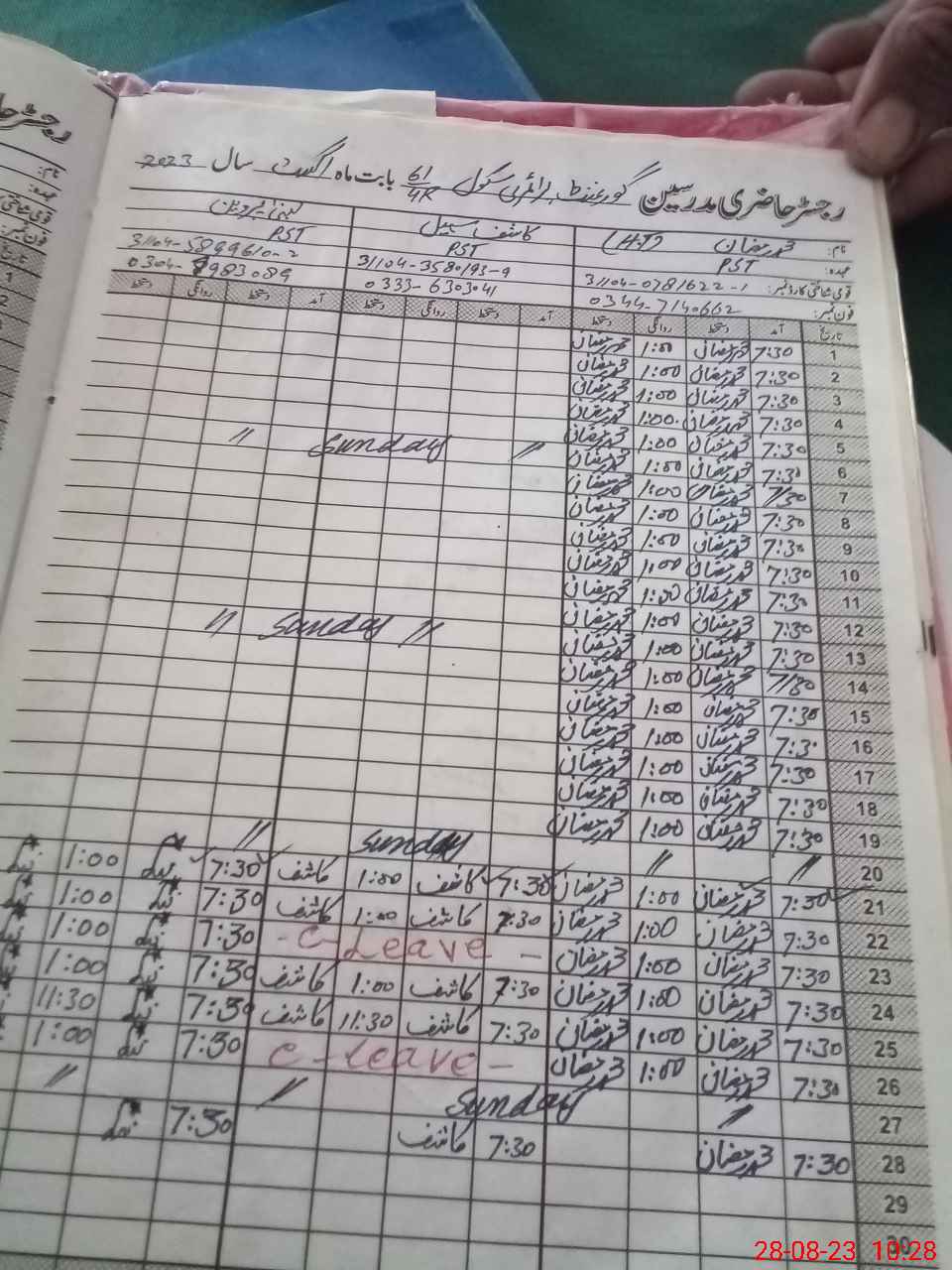 | CNIC | Full Name | Designation | R/C | Absence during last cal. month |