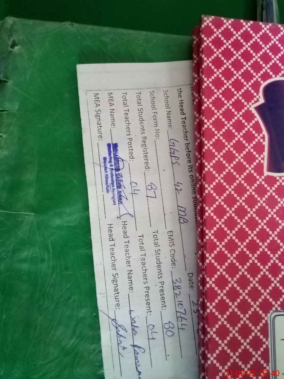 | EMIS Code: 38210764 | Name of School: GGPS CHAK NO 42 MB | |||