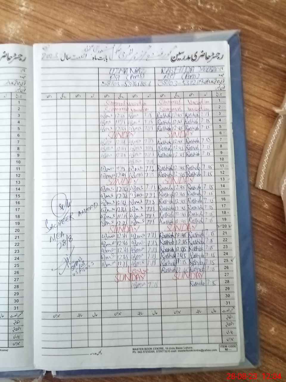 | CNIC | Full Name | Designation | R/C | Absence During Last Calender Month |