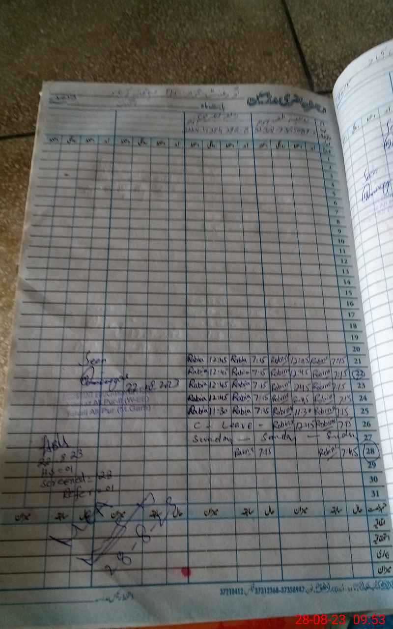 | CNIC | Full Name | Designation | R/C | Absence During Last Calender Month |