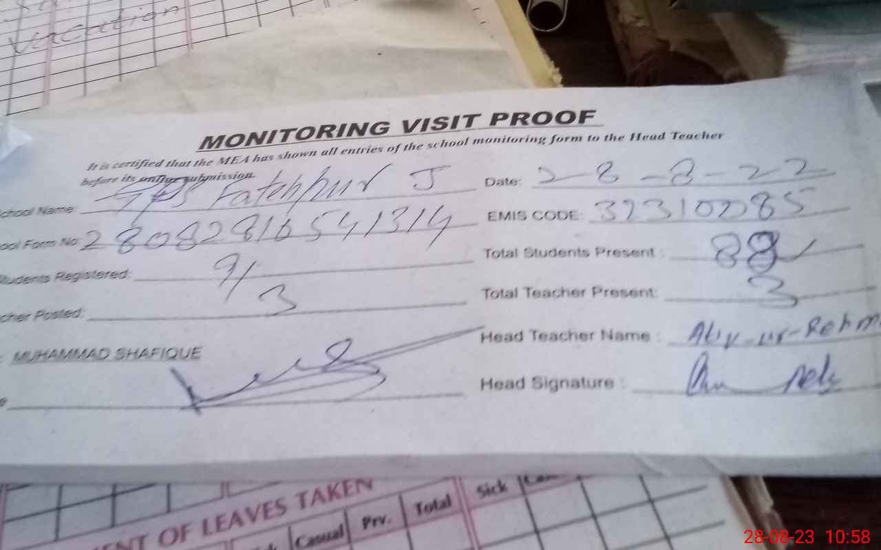 | EMIS Code: 32310085 | Name of School: GPS FATEH PUR JADEED | |||