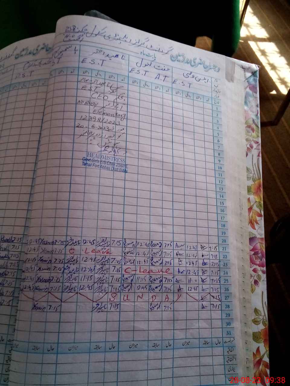 | Name: Sa**** Na**** Designation: (School Headmaster's/Headmistress's) EST Phone/Cell Number: 03**** |