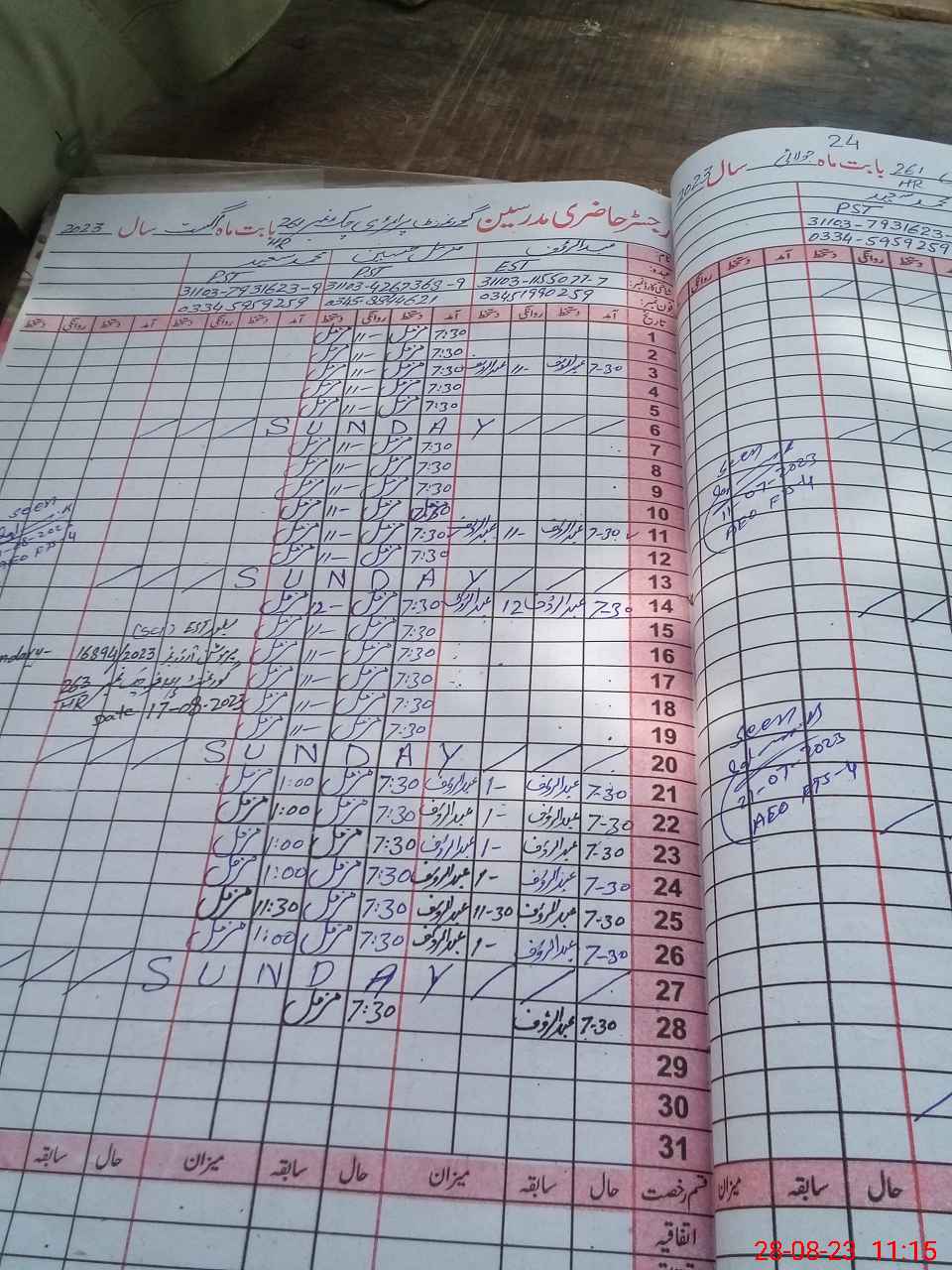 | Name: AB**** RA**** Designation: (School Headmaster's/Headmistress's) PST Phone/Cell Number: 03**** |
