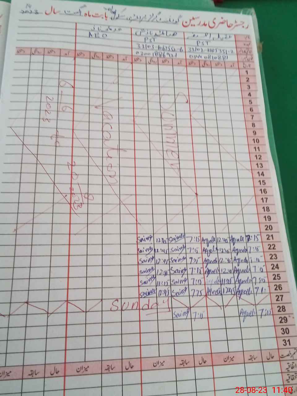 | Name: AQ**** AS**** Designation: (School Headmaster's/Headmistress's) PST Phone/Cell Number: 03**** |