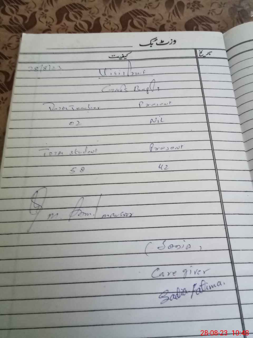 | Attendance Register | Head Teacher | MEA with School | Visit Proof |