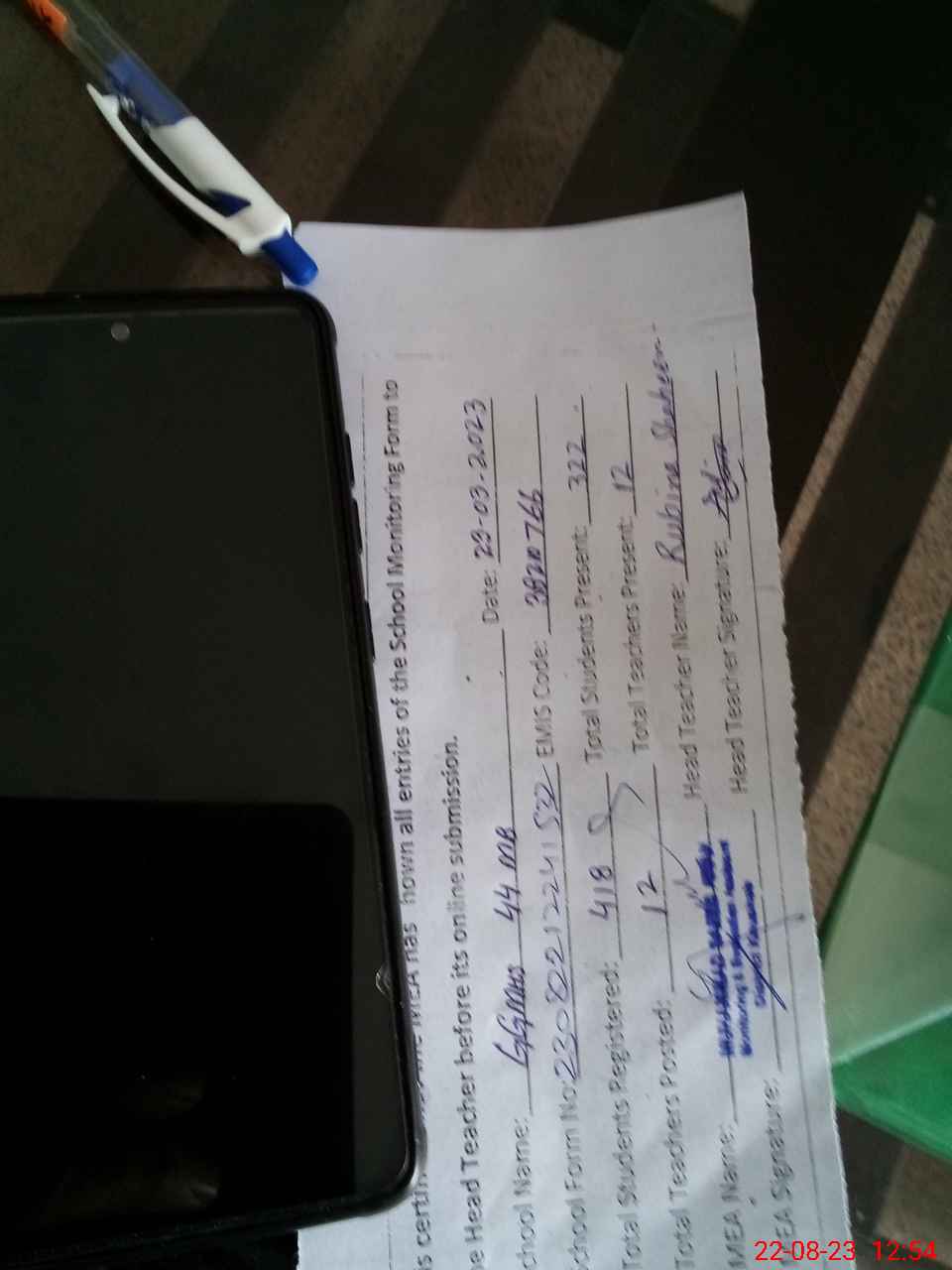 | Name: Ru**** Sh**** Designation: (School Headmaster's/Headmistress's) SST Phone/Cell Number: 03**** |