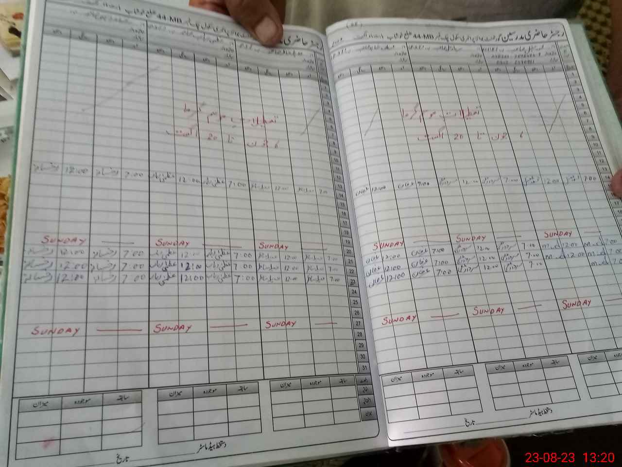 | CNIC | Full Name | Designation | R/C | Absence During Last Calender Month |