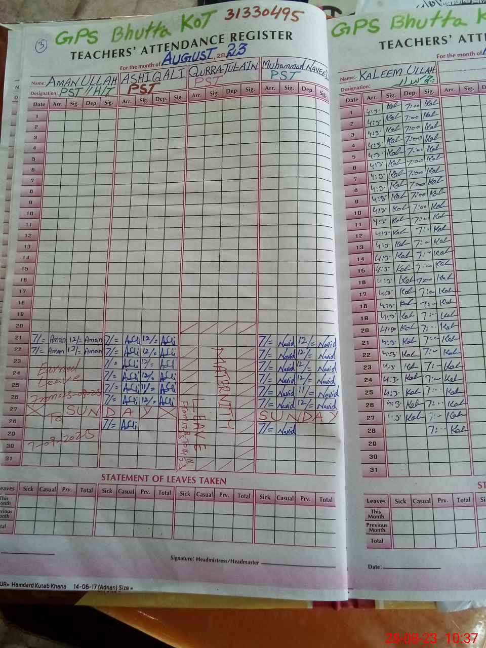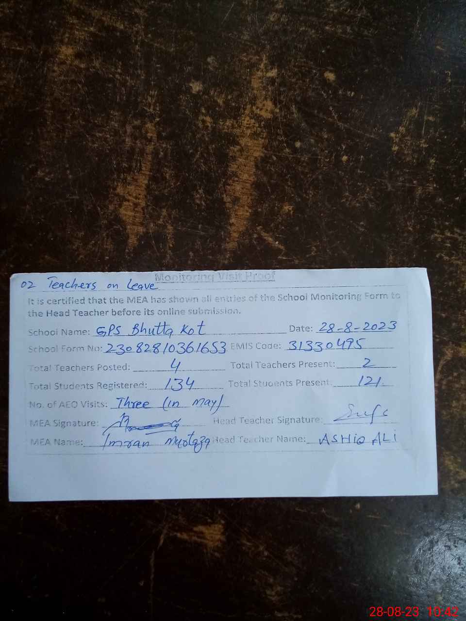| EMIS Code: 31330495 | Name of School: GPS BHUTTA KOT | |||