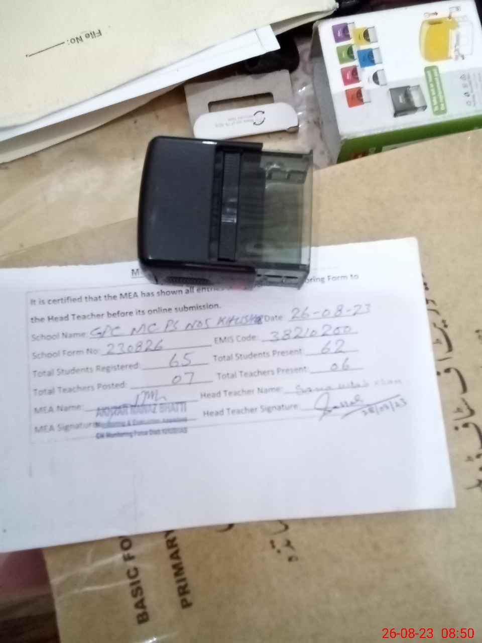 | EMIS Code: 38210200 | Name of School: GPS MC NO. 5 KHUSHAB | |||