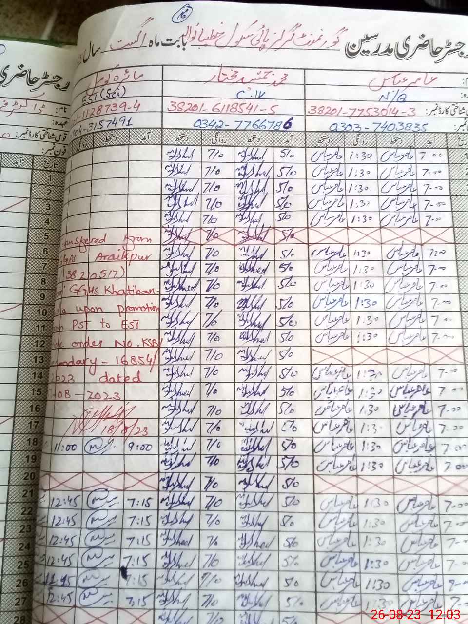 | Name: Kh**** UnNi**** Designation: (School Headmaster's/Headmistress's) Head Mistress) Phone/Cell Number: 03**** |