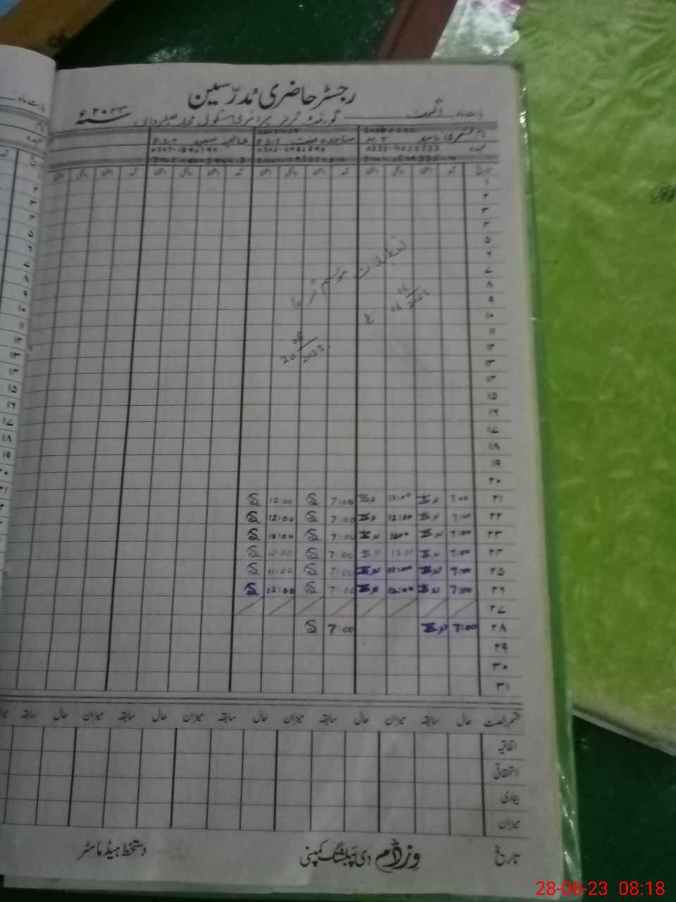 | Remarks (Use Separate Page if Required): The name of teacher Alia Saeed PST is not in tab list and she is absent | |||||