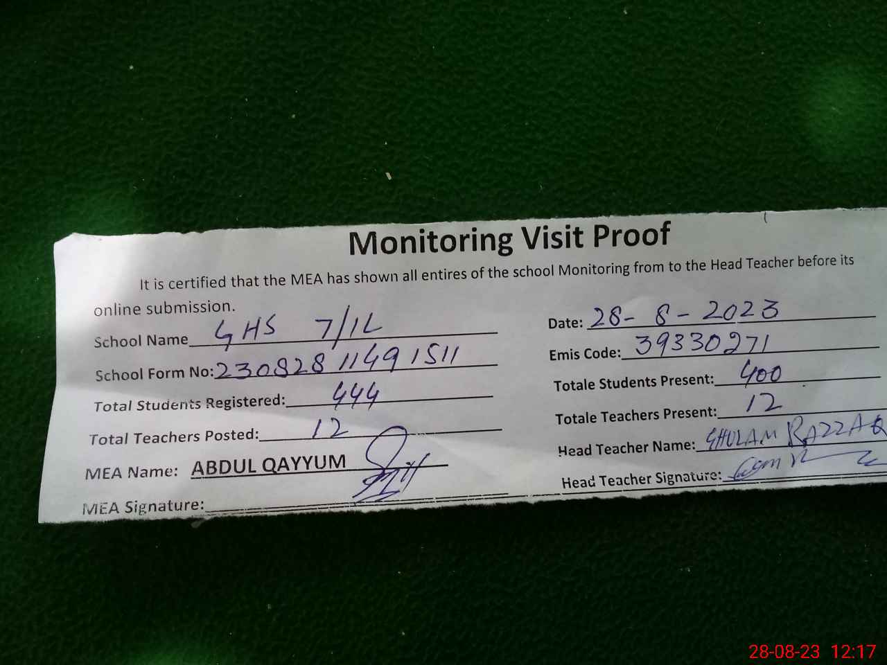 | EMIS Code: 39330271 | Name of School: GHS CHAK NO 7/1.L | |||