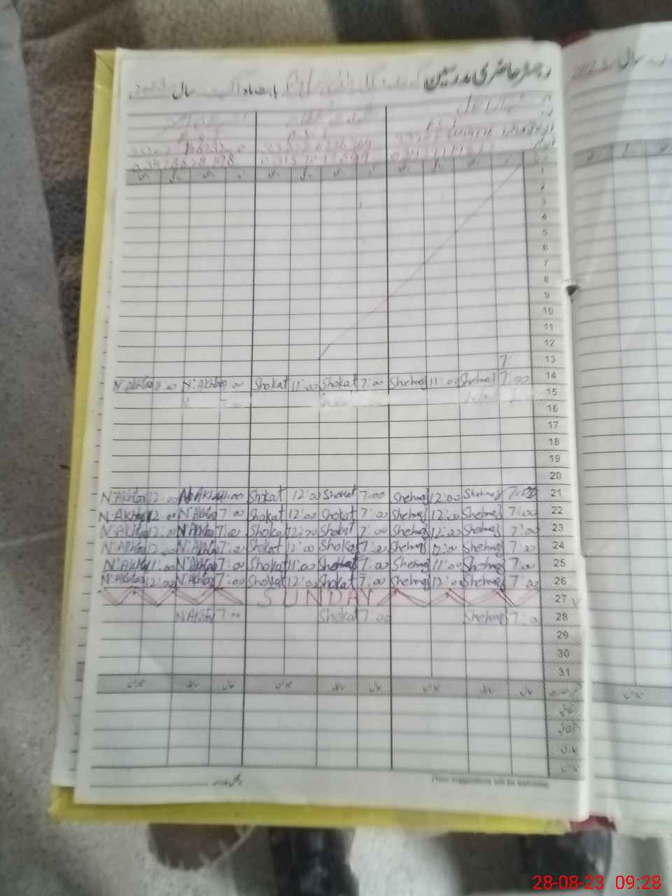 | CNIC | Full Name | Designation | R/C | Absence During Last Calender Month |