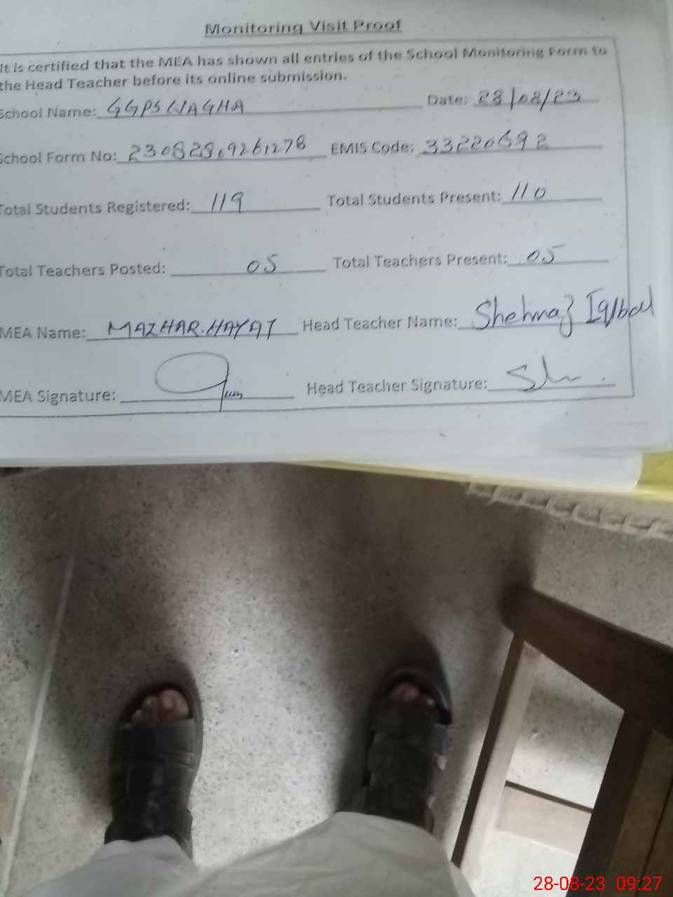 | Attendance Register | Head Teacher | MEA with School | Visit Proof |