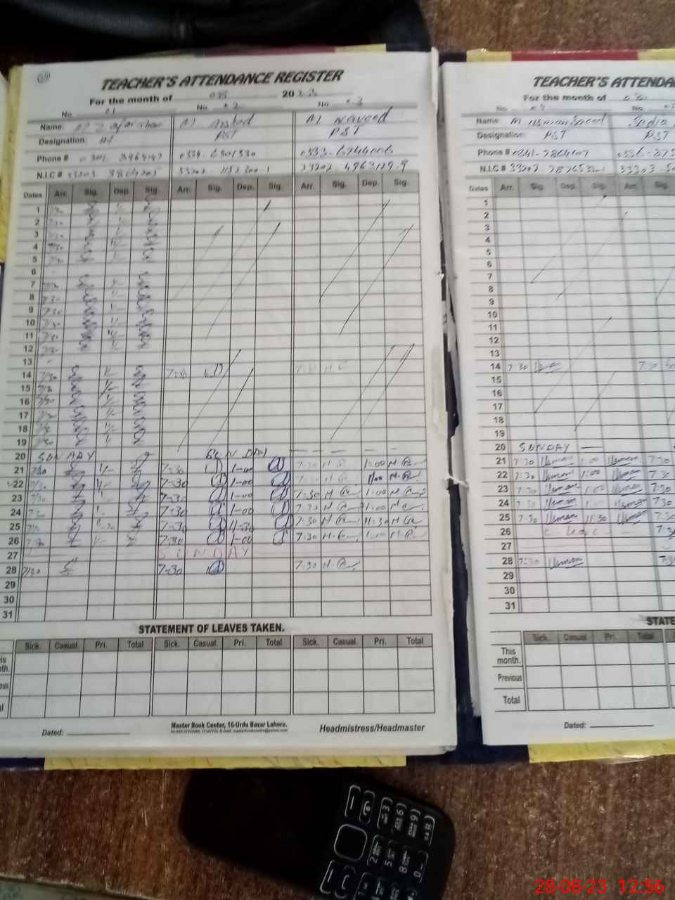 | Name: MU**** NA**** Designation: (School Headmaster's/Headmistress's) PST Phone/Cell Number: 03**** |