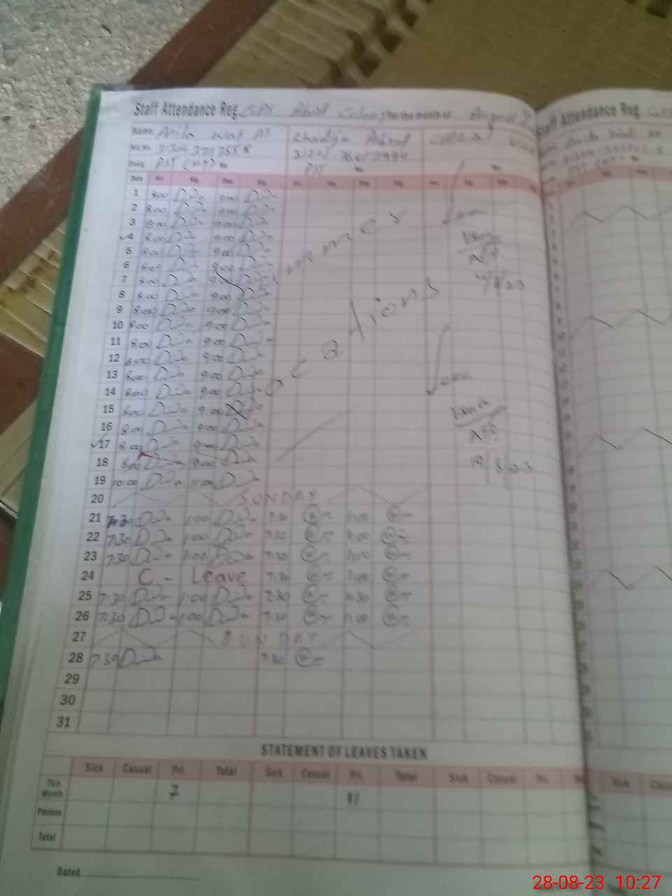 | Leave | Duty | Absent | Maternity | Medical | Ex- Pak |