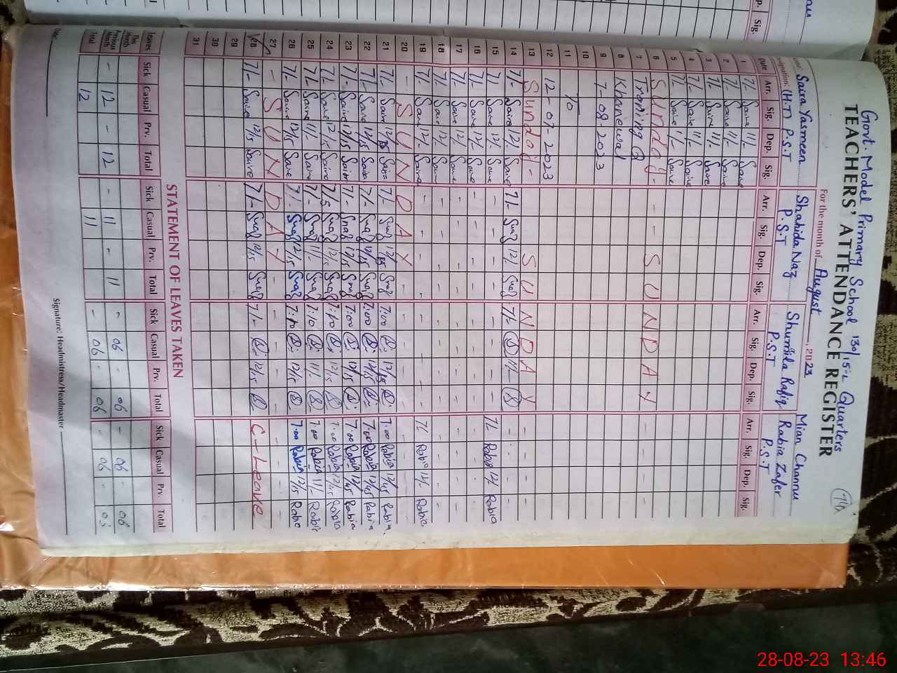 | 36**** | Ra**** Za**** | PST | Regular | 0 | 8 | 0 | 0 | 0 | 0 | 0 | 0 | 0 | Casual |