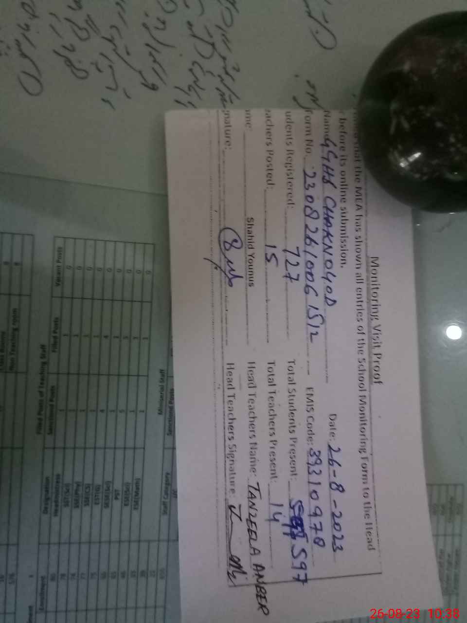 | Name: TA**** AM**** Designation: (School Headmaster's/Headmistress's) HEADMASTER Phone/Cell Number: 03**** |