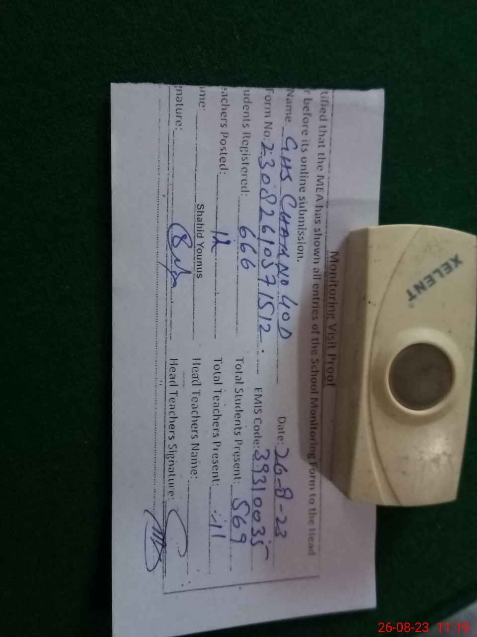 | Name: Sh**** Al**** Sa**** Designation: (School Headmaster's/Headmistress's) Headmaster Phone/Cell Number: 03**** |