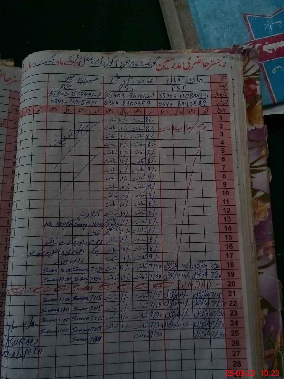 | District: SHEIKHUPURA | Tehsil: SAFDARABAD | Markaz: PHULARWAN-MALE | Level: Primary | |