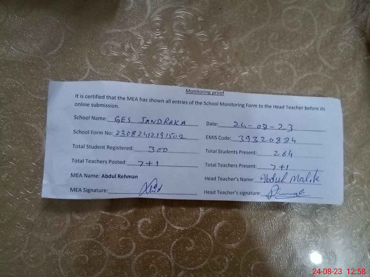 | EMIS Code: 39320884 | Name of School: GES JANDRAKA | |||
