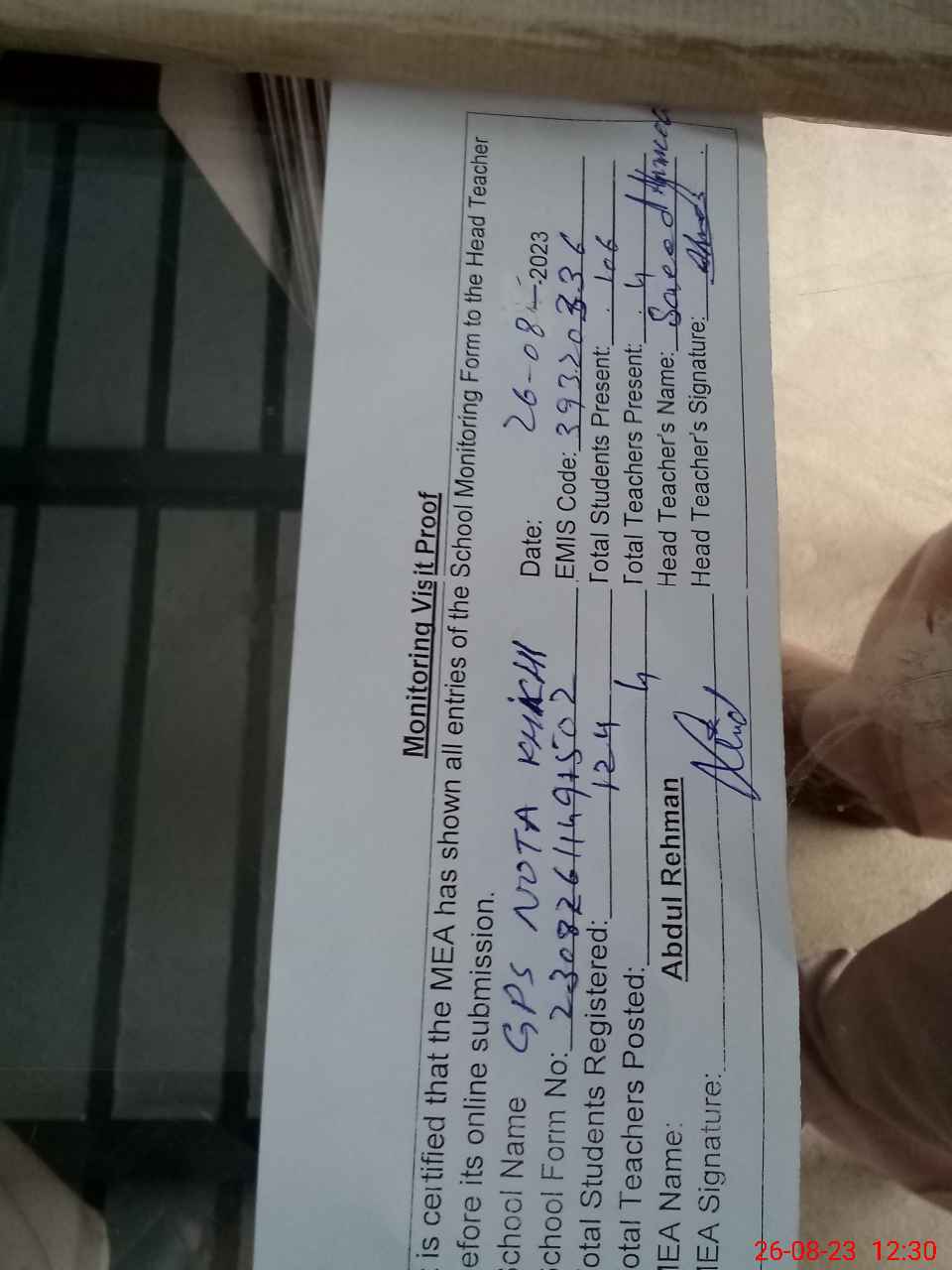 | EMIS Code: 39320336 | Name of School: GPS NOTHA KHICHI | |||