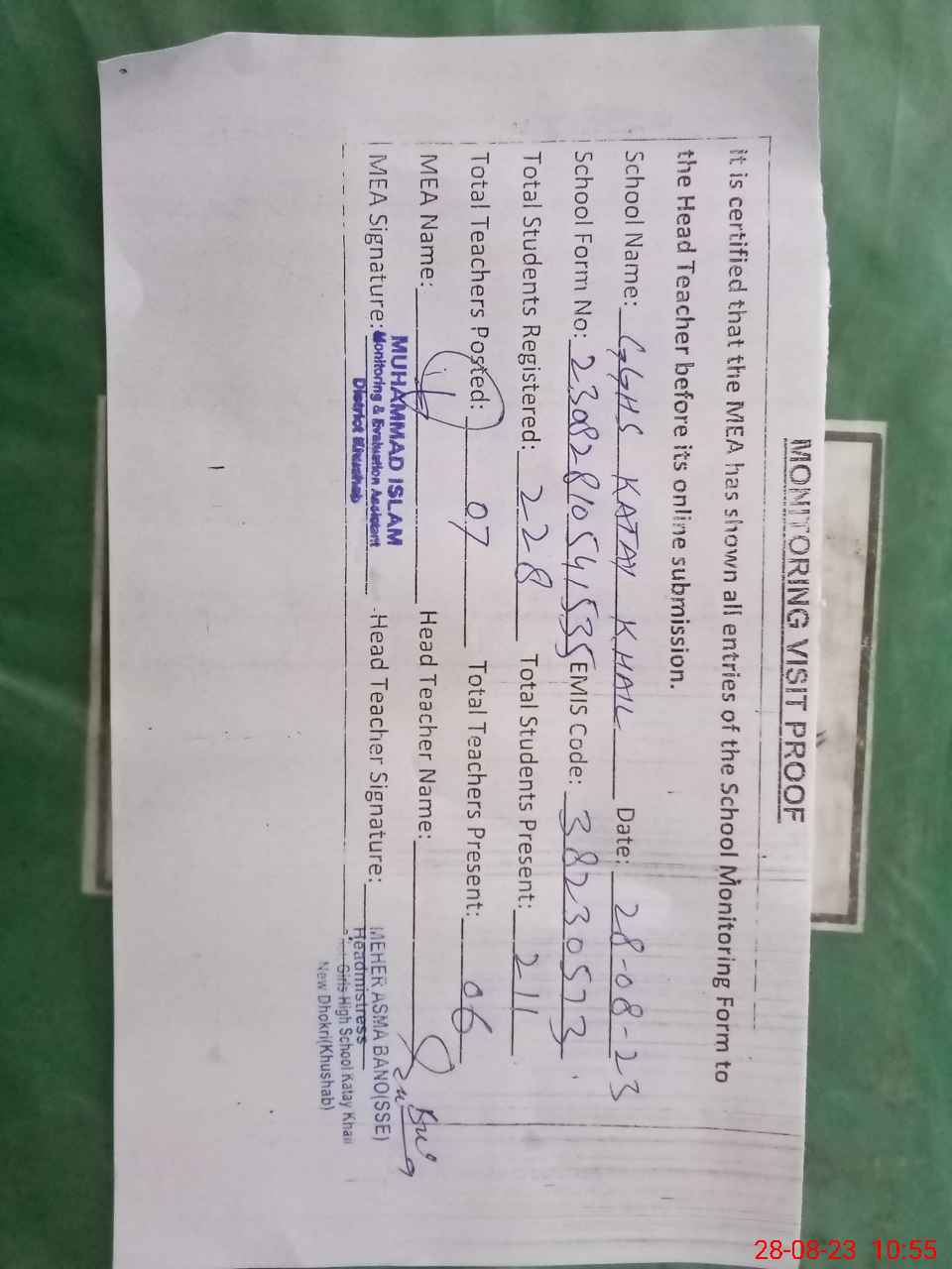 | EMIS Code: 38230573 | Name of School: GGHS KATAY KHAIL | |||