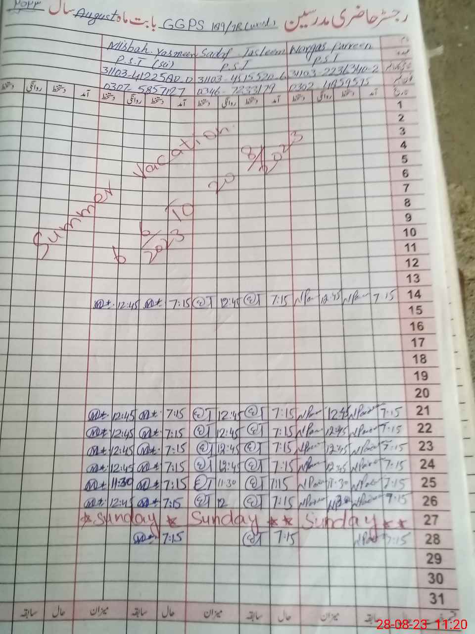 | CNIC | Full Name | Designation | R/C | Absence During Last Calender Month |