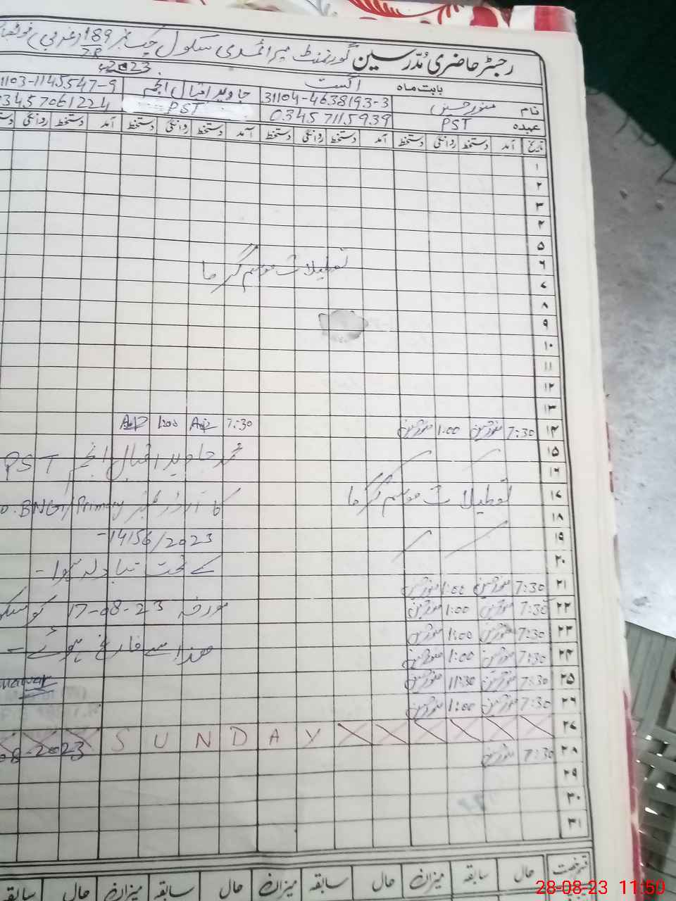 | Name: Mu**** Hu**** Designation: (School Headmaster's/Headmistress's) PST Phone/Cell Number: 03**** |