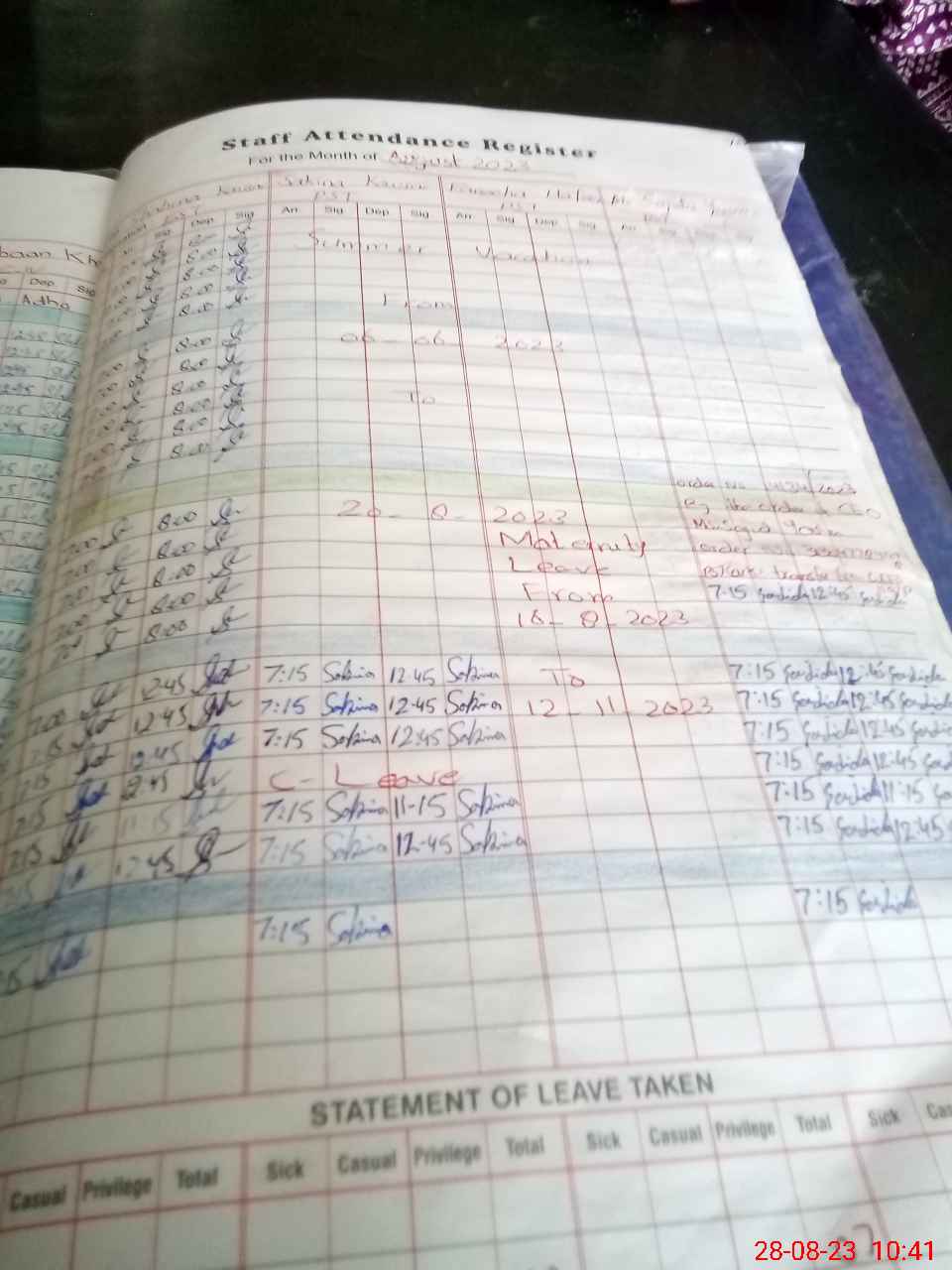 | 31**** | Fa**** Ha**** | PST | Regular | 0 | 0 | 0 | 0 | 0 | 0 | 0 | 0 | 0 | Maternity |