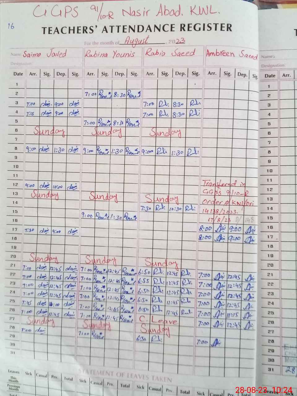 | Remarks (Use Separate Page if Required): Newly posted PST teacher Ambreen Saeed present in the school but her name is not in monitoring app | |||||