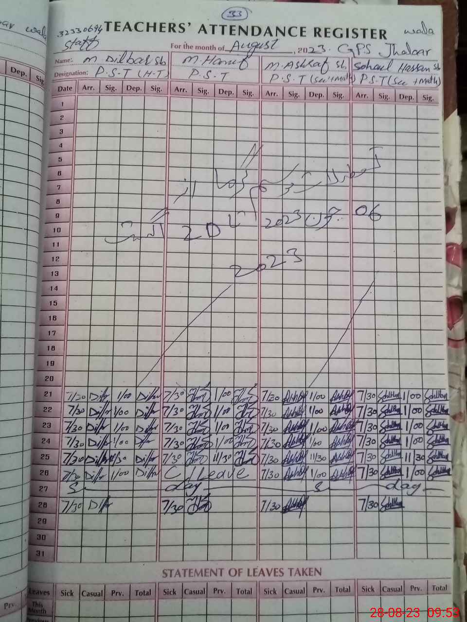 | Name: M.**** Designation: (School Headmaster's/Headmistress's) PST/PTC/JV Phone/Cell Number: 03**** |