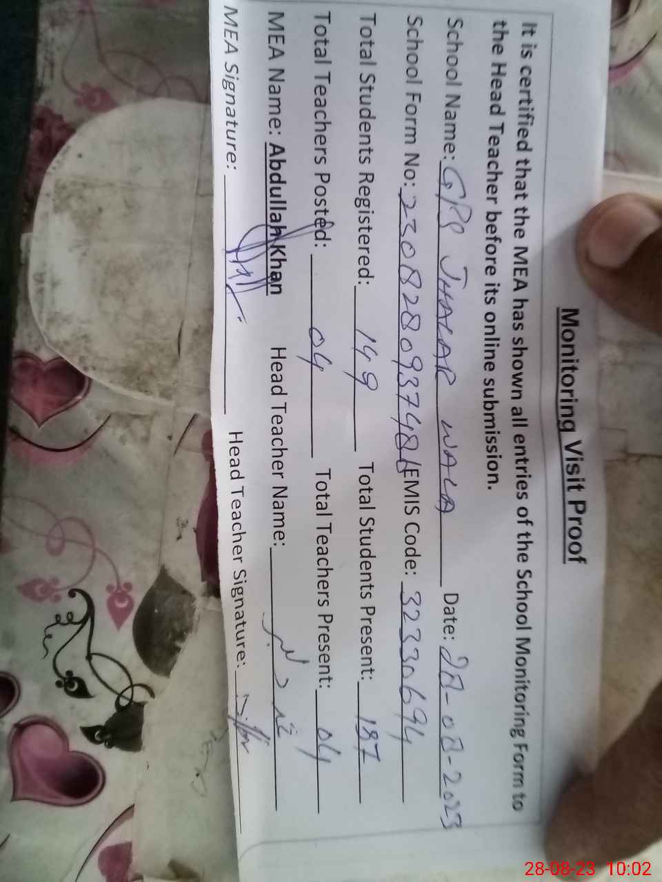 | EMIS Code: 32330694 | Name of School: GPS JHALAAR WALA | |||