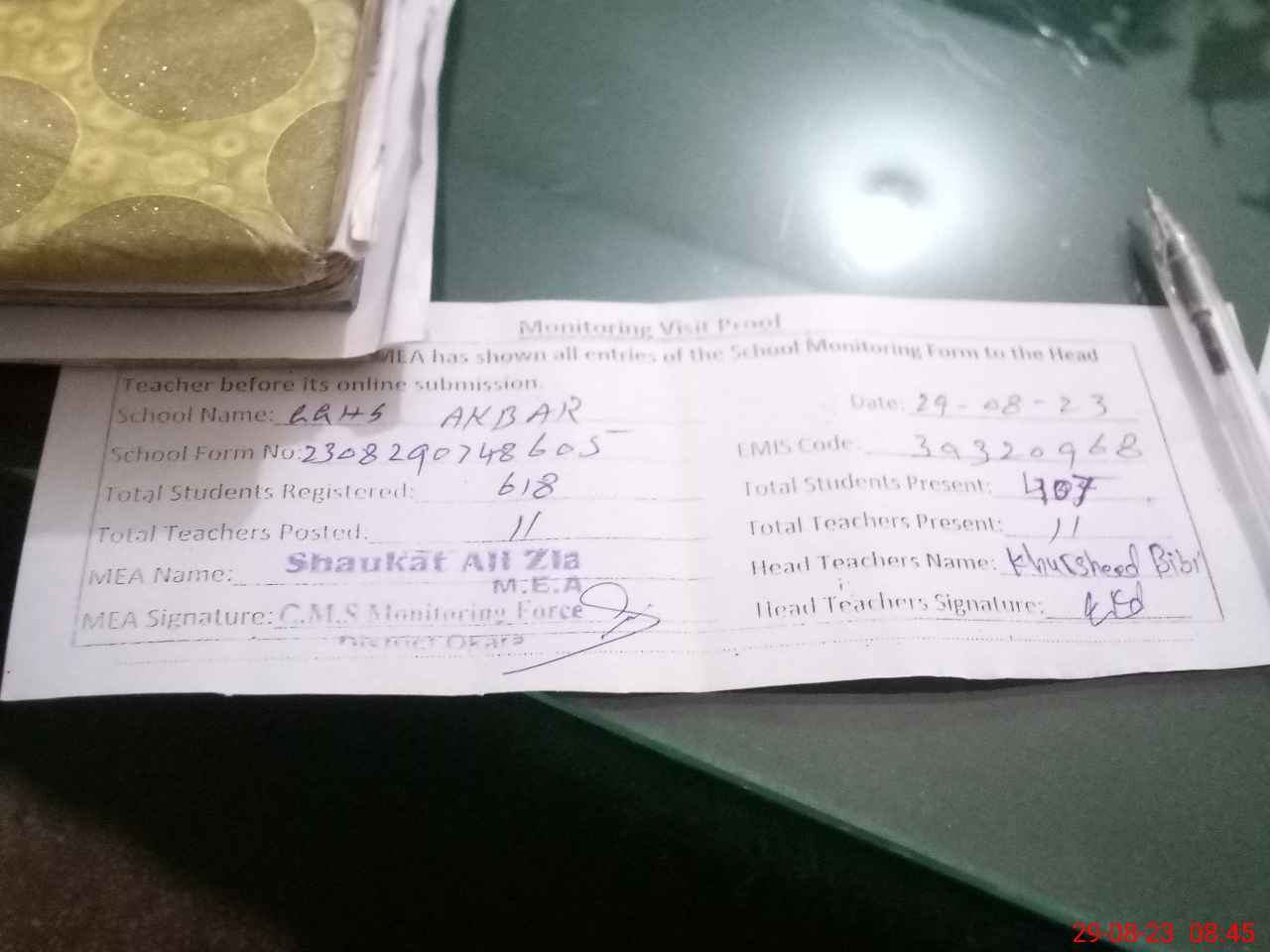 | EMIS Code: 39320968 | Name of School: GGHS AKBAR OKARA | |||