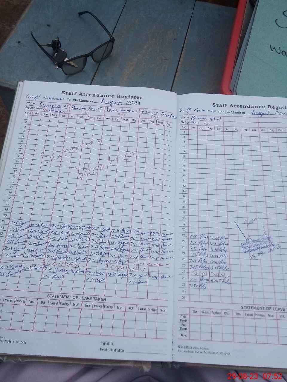 | Name: SH**** SH**** Designation: (School Headmaster's/Headmistress's) PST Phone/Cell Number: 03**** |
