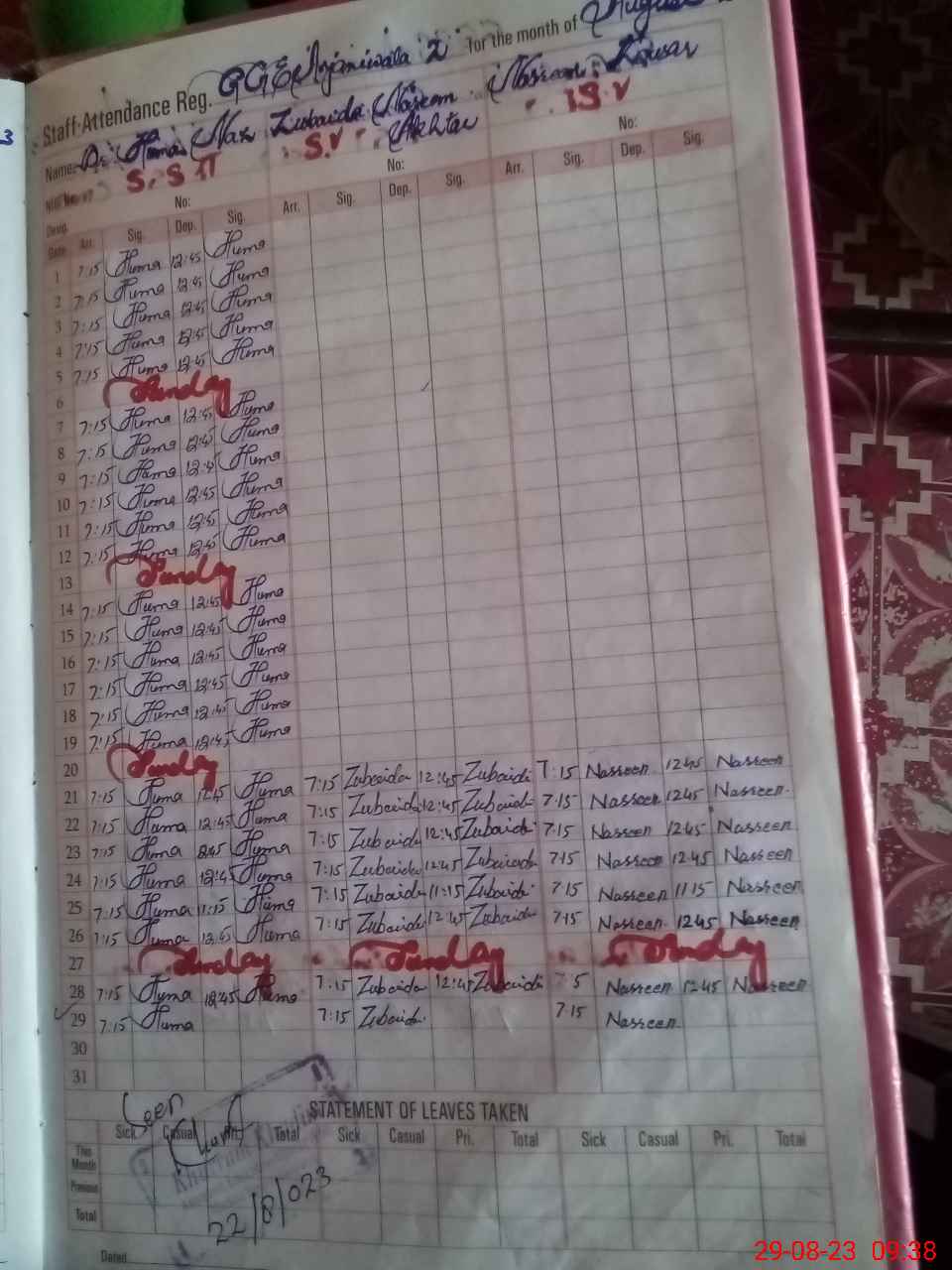| Name: Zu**** Na**** Ak**** Designation: (School Headmaster's/Headmistress's) EST Phone/Cell Number: 03**** |