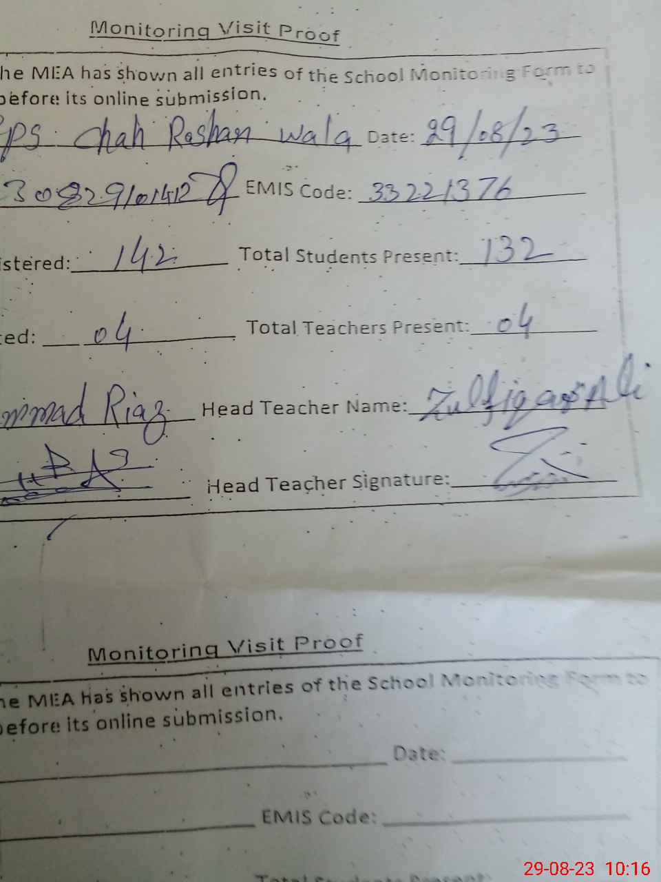 | EMIS Code: 33221376 | Name of School: GPS CHAH ROSHAN WALA | |||