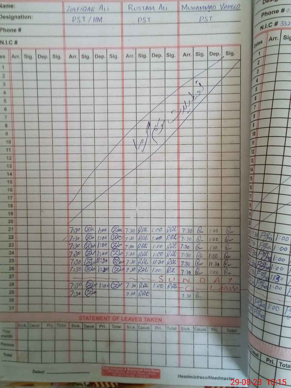 | Name: ZU**** AL**** Designation: (School Headmaster's/Headmistress's) PST/PTC/JV Phone/Cell Number: 03**** |
