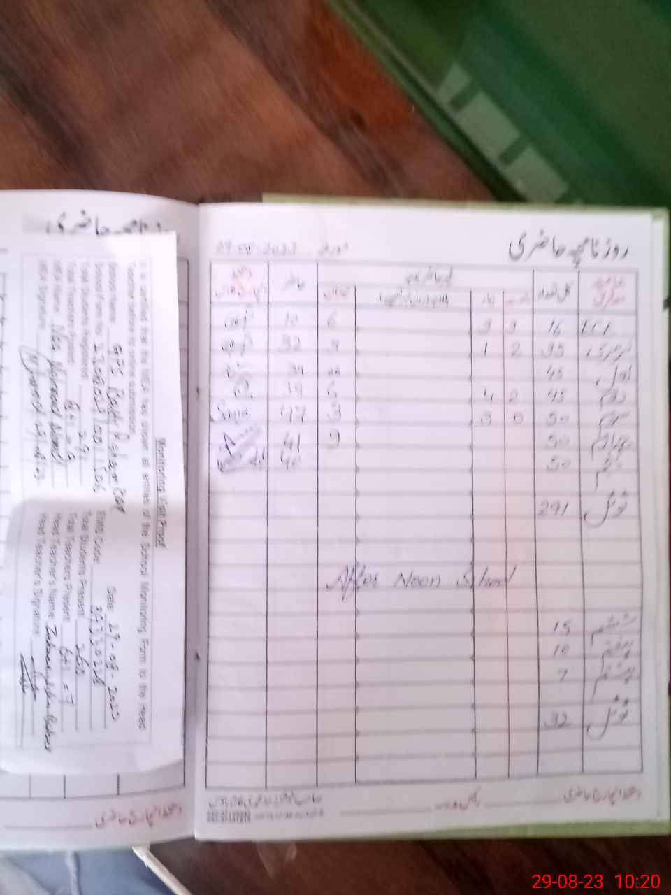 | Attendance Register | Head Teacher | MEA with School | Visit Proof |